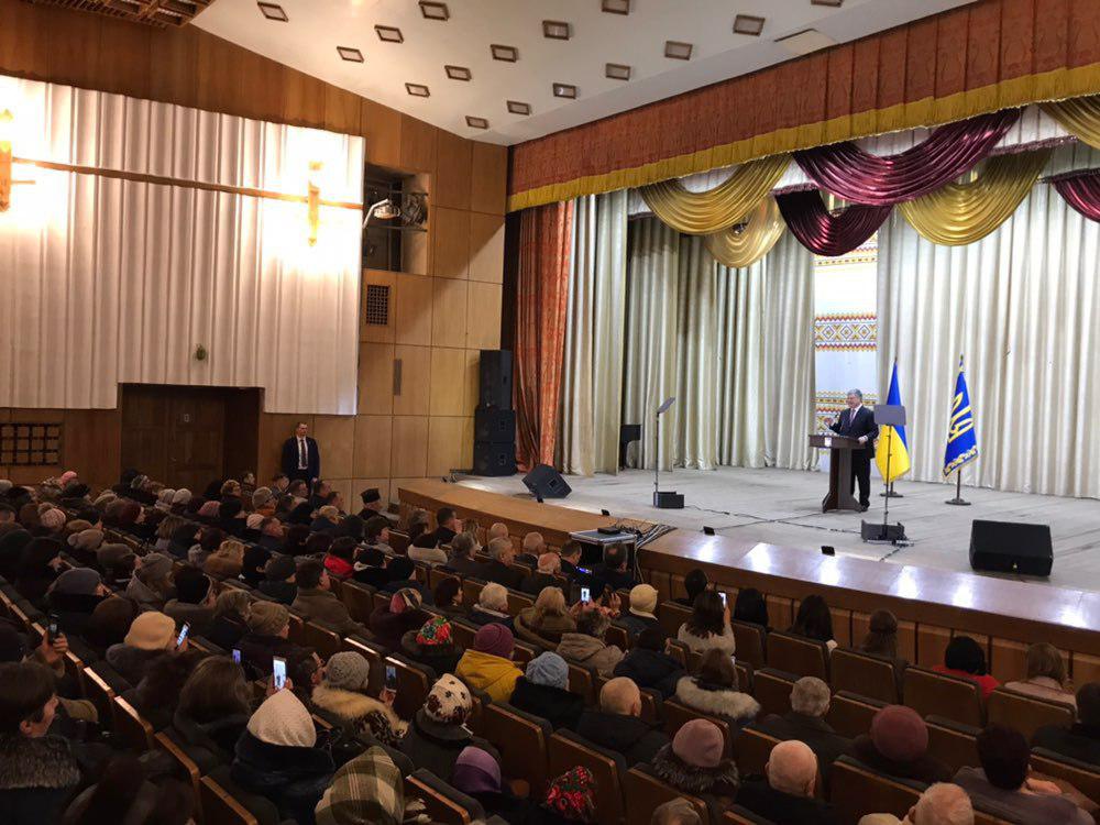 Як повідомлялося, у рамках передвиборчого «Томос-туру» Порошенко прибув у Ківерці. Спочатку президент виступив перед натовпом біля місцевого будинку культури. В оточенні охоронців він розповів про Томос та подякував усім за молитву, завдяки якій його отримали.