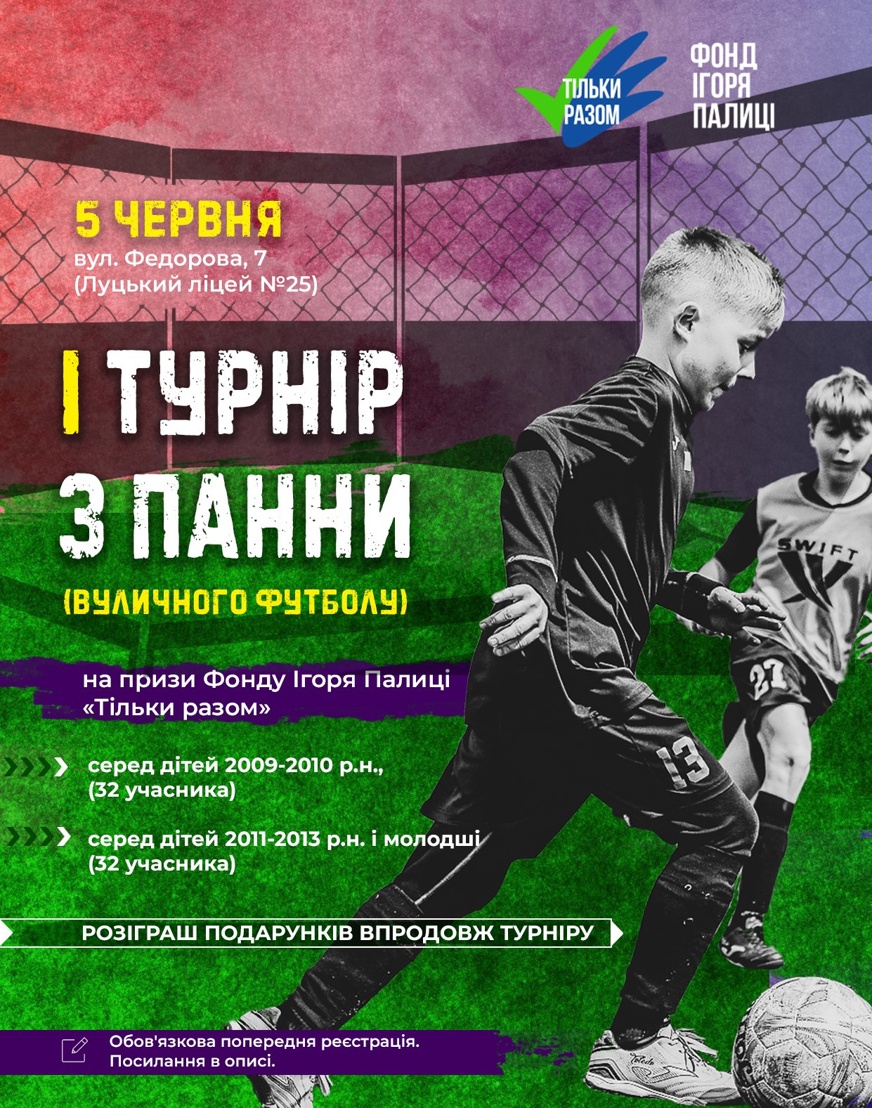 У Луцьку відбудеться турнір із панни (вуличного футболу) на призи Фонду Ігоря Палиці «Тільки разом». Змагання триватимуть 5 червня на території Луцького ліцею №25 (вулиця Федорова, 7).