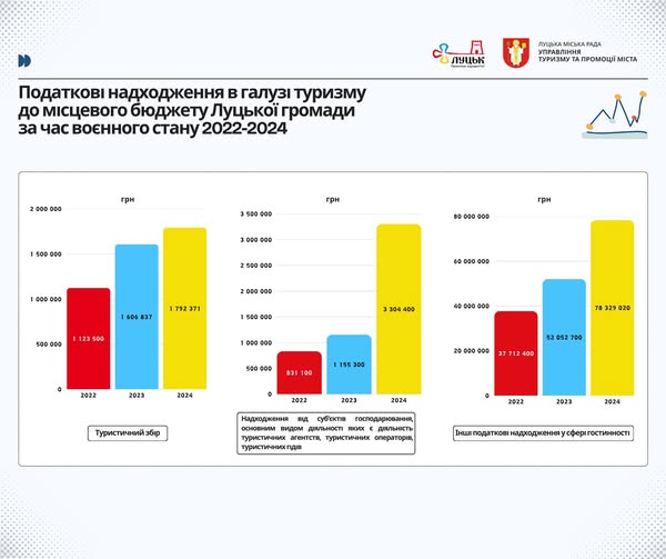 Зокрема, у 2024 році сума туристичного збору (кошти, які сплачують туристи при поселенні в готелі) перевищує 1,7 млн грн, що свідчить про позитивну динаміку в галузі.