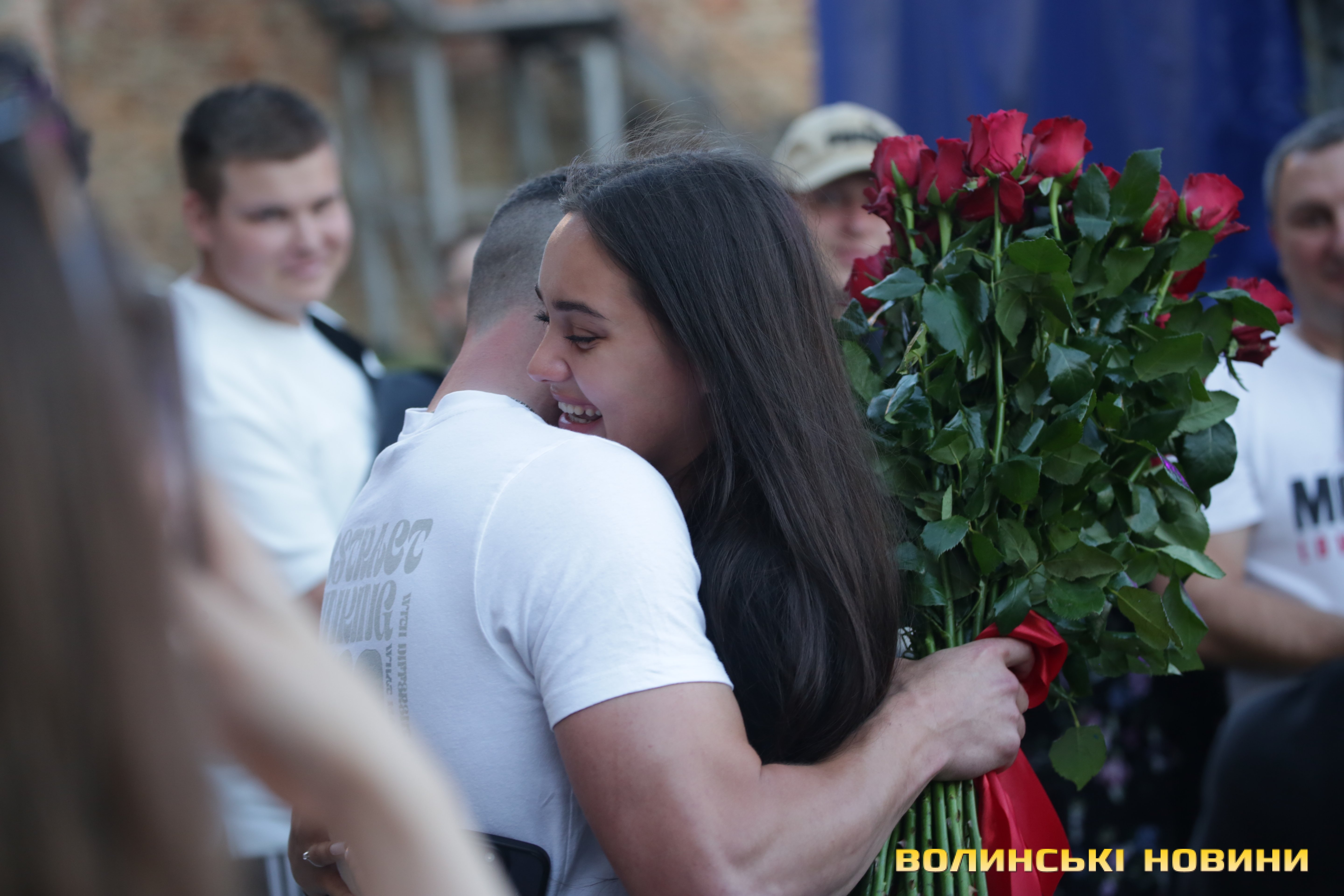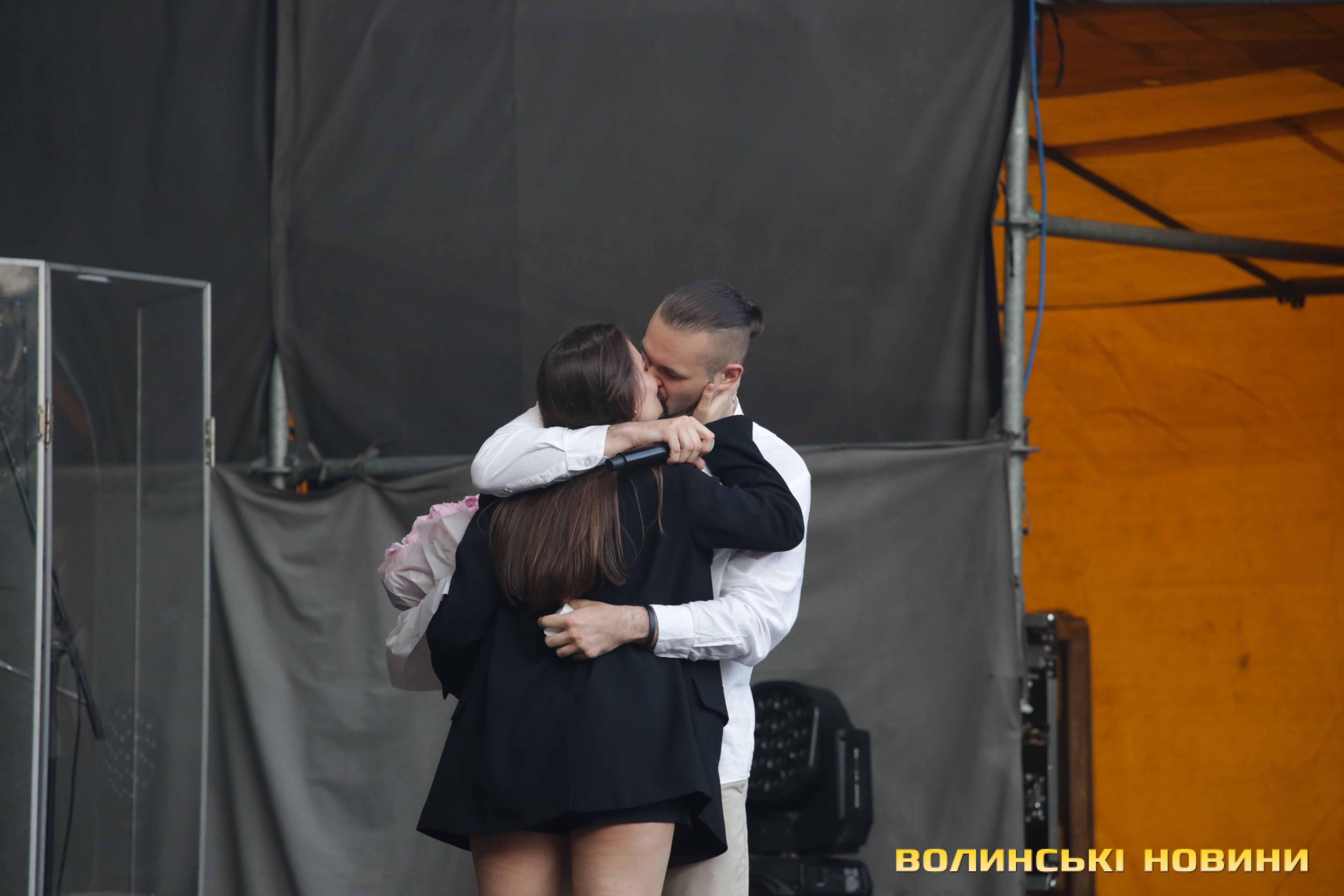 «Я вдячний долі за те, що вона звела нас із тобою. Я вдячний тобі за твою любов, за твоє терпіння, за твою турботу, за твоє тепло. Я кажу тобі це кожен раз і зараз хочу сказати на весь Луцьк, на всю Україну і на увесь світ: ти найкраща і найгарніша дівчина на цій Землі. Я хочу, щоб ти запам’ятала цей день назавжди. 31 травня. Твоє рідне місто. Замок Любарта. Ми стоїмо на сцені з нашим улюбленим артистом – із Дмитром Монатіком. Я хочу з тобою спільного життя, дітей, сім’ю, старість. Я дуже сильно тебе кохаю. Ти будеш моєю дружиною?» – запитав він зі сцени в обраниці.