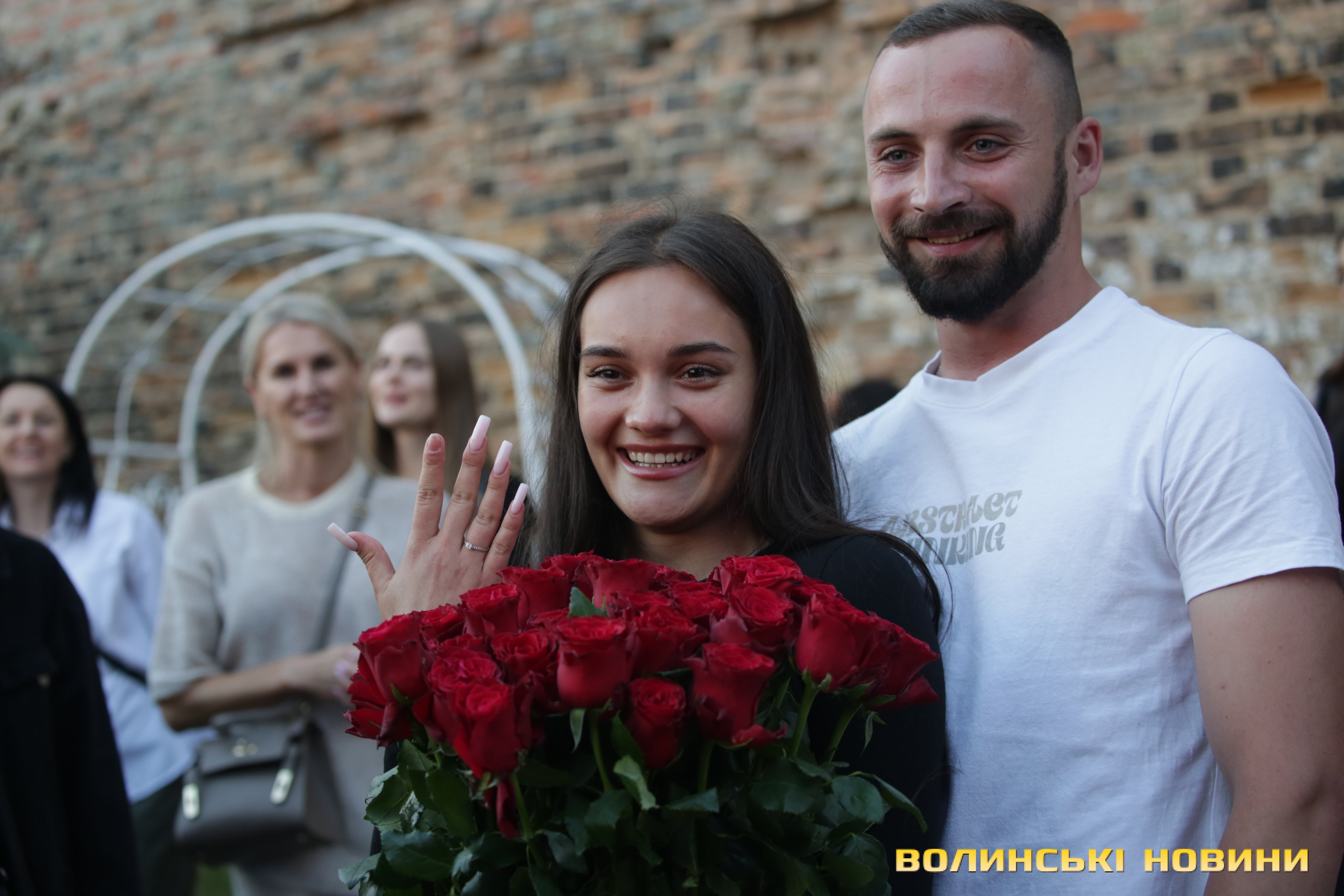 Двоє чоловіків освідчилися коханим на концерті Дмитра Монатіка в Луцькому замку. Дівчата відповіли обранцям «Так».