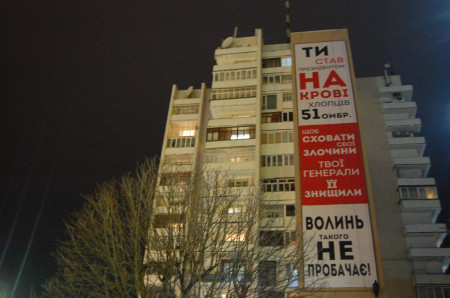 «Ти став президентом на крові хлопців 51 ОМБР. Щоб сховати свої злочини, твої генерали її знищили. Волинь такого не пробачає», – так невідомі звернулись до президента напередодні його візиту на Волинь.