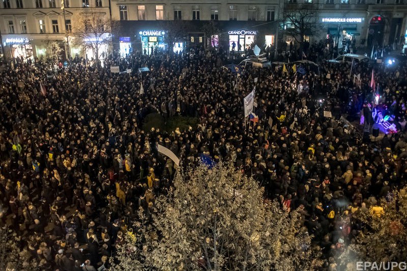 На центральні вулиці Праги вийшли тисячі людей, які вимагають відставки прем'єр-міністра Андрія Бабіша через скандал з поїздкою його сина в окупований Крим.