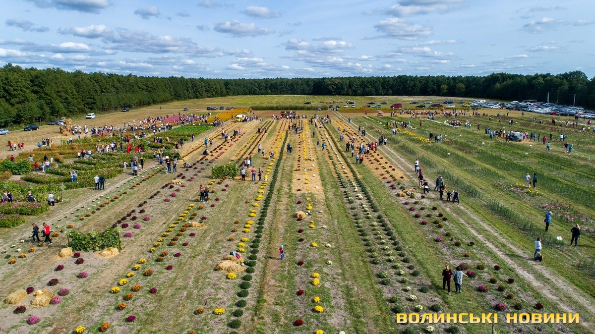 Тисячі квітів та відвідувачів: осінній фестиваль квітів у «Волинській Голландії» з висоти. Фоторепортаж