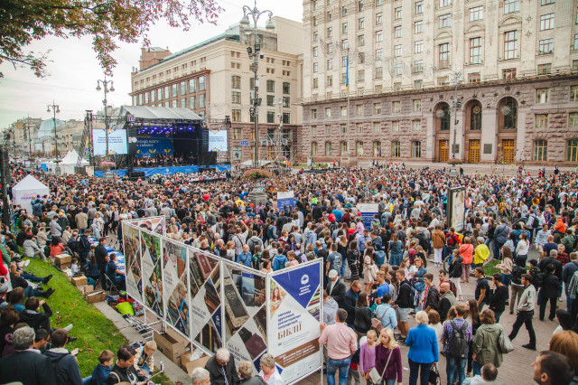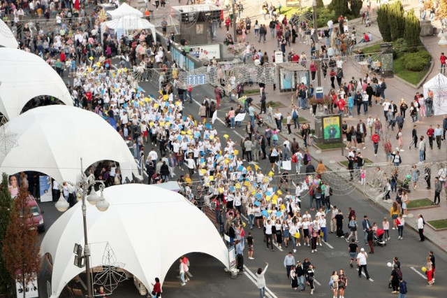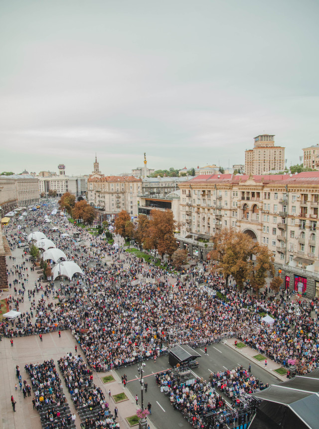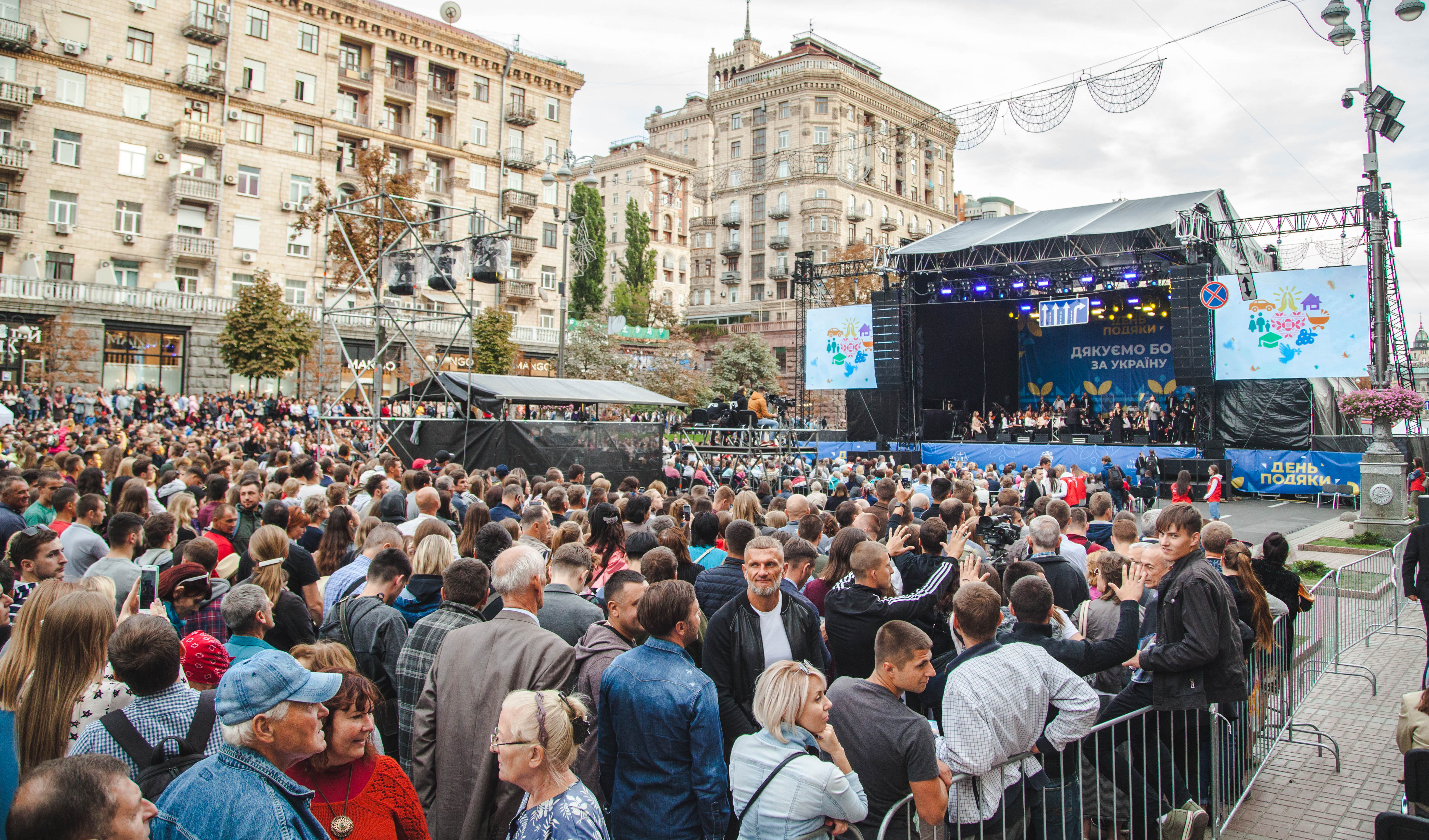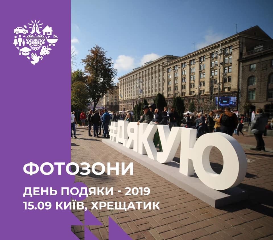 Днями на Хрещатику тисячі українців просто неба відзначали Всеукраїнський День Подяки. Під час заходу близько 300 волонтерів взяли участь у масштабному флешмобі й у центрі Києва разом створили велике слово «Дякую».