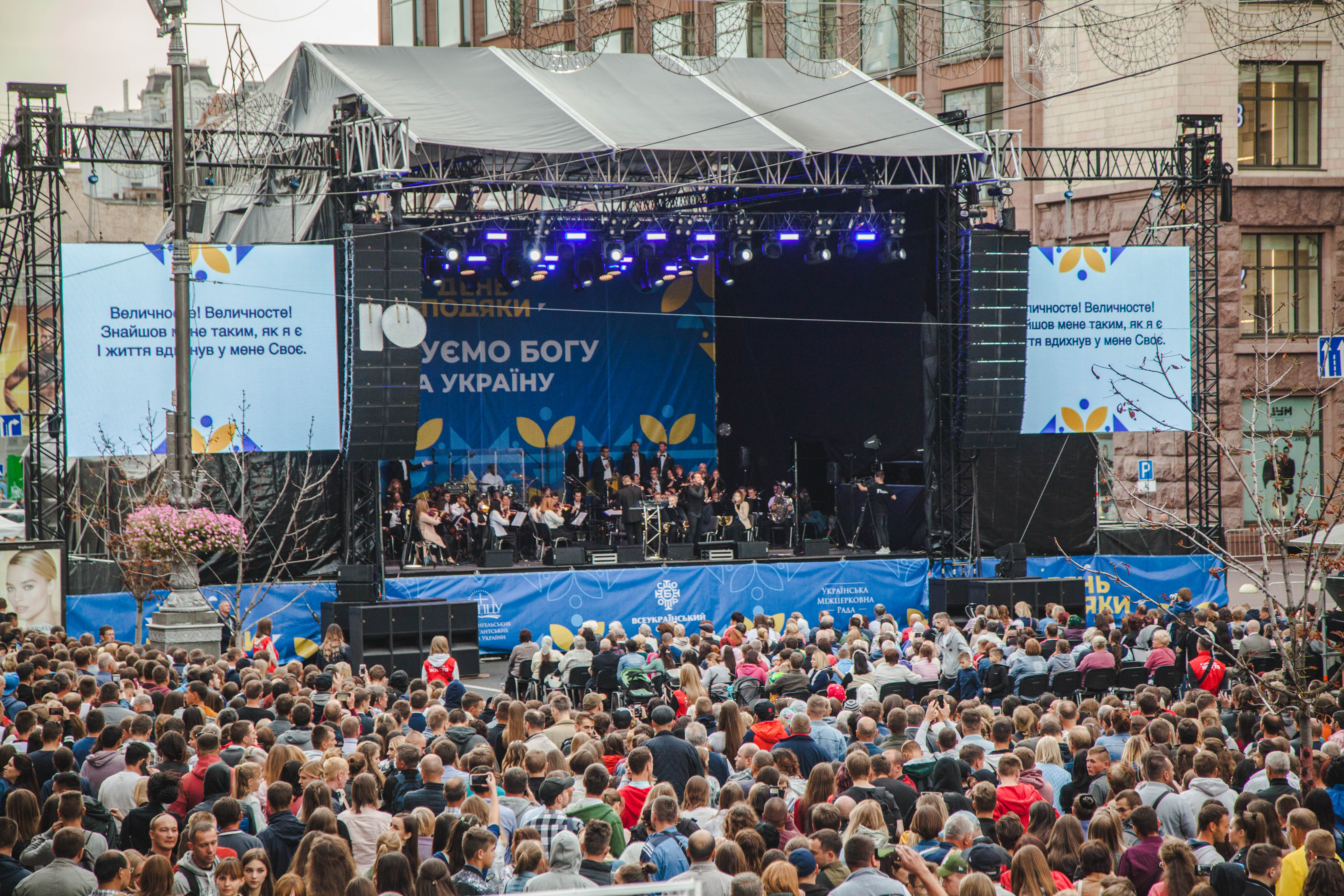 О 18:00 на сцені біля ЦУМу розпочалась вечірня урочиста програма за участі вокально-інструментальних колективів та оркестру.«Усі події в Україні, які відбуваються, нас побуджують все більше дякувати Богу за хліб, за мир, за країну», – зазначив під час святкування старший єпископ Української Церкви Християн Віри Євангельської Михайло Паночко.