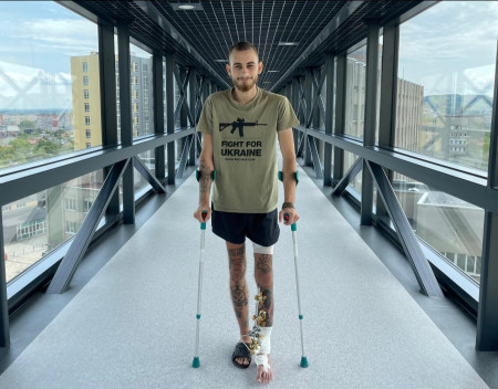 «Хлопець поступив до нас з багатоуламковими переломами двох кісток гомілки та з наскрізною кульовою раною. Першим нашим кроком було загоєння рани, аби провести реконструктивну операцію на великій гомілковій кістці та уникнути інфекції. Паралельно ми виконали втручання по реконструкції малої гомілкової кістки та зафіксували її апаратом зовнішньої фіксації», – ділиться історією молодого пацієнта травматолог Центру Микола Блиндюк.