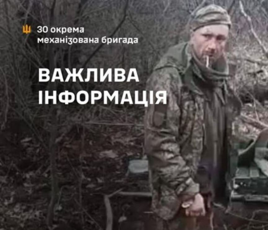 У пресслужбі 30 ОМБр зазначили, що військовий вважається зниклим безвісти з 3 лютого 2023 року після бойових дій в районі міста Бахмут.