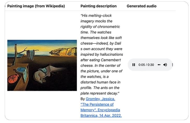 Як приклад розробники виклали сотні мелодій, створених MusicLM. Серед них музика, створена за описом картин Сальвадора Далі, Анрі Матісса, Едварда Мунка, Пабло Пікассо та інших відомих художників.