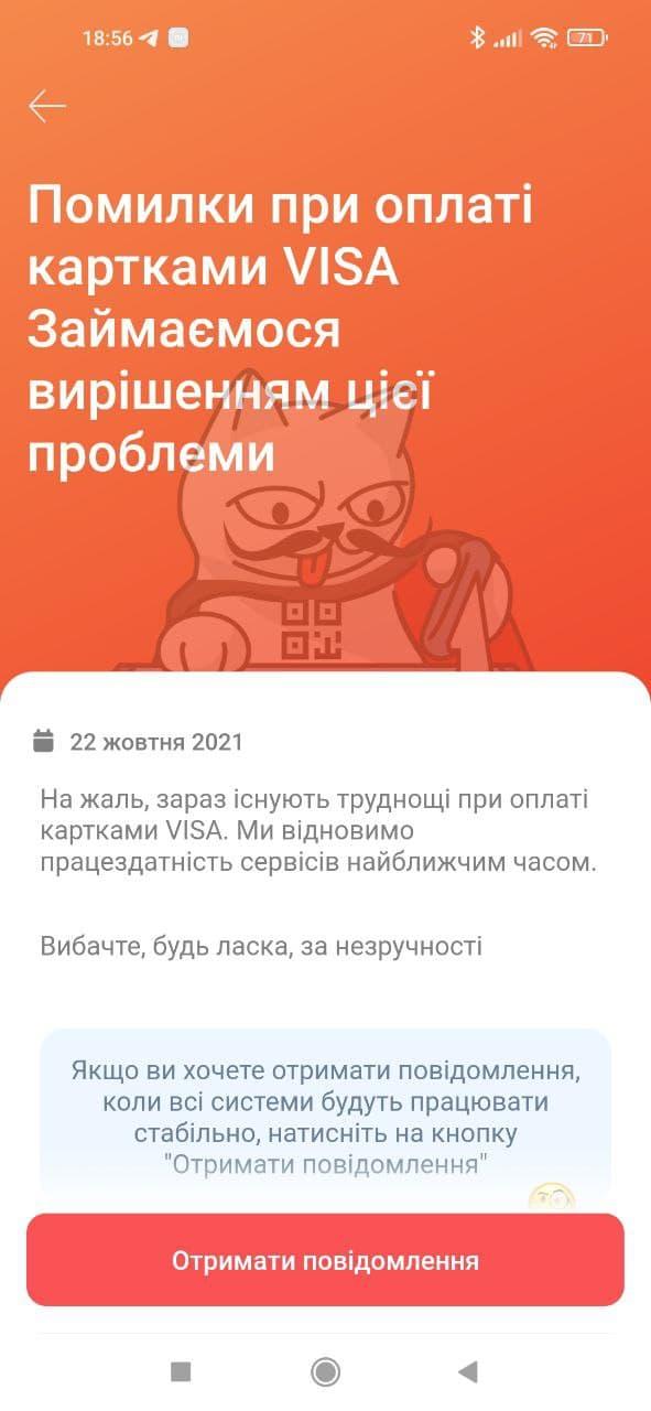 Як відзначили в Monobank, на цей момент спостерігаються проблеми при проведенні платіжних операцій з картами VISA.