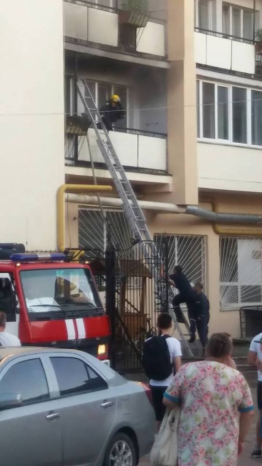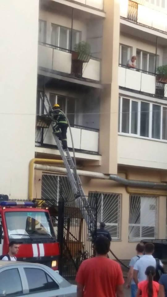 На місце прибули рятувальники. Через вікно квартири викидають обгорілі речі. За попередньою інформацією, пожежа почалася з балкону. Можливо, хтось кинув недопалок. Між балконом та кімнатою від температури тріснуло скло.