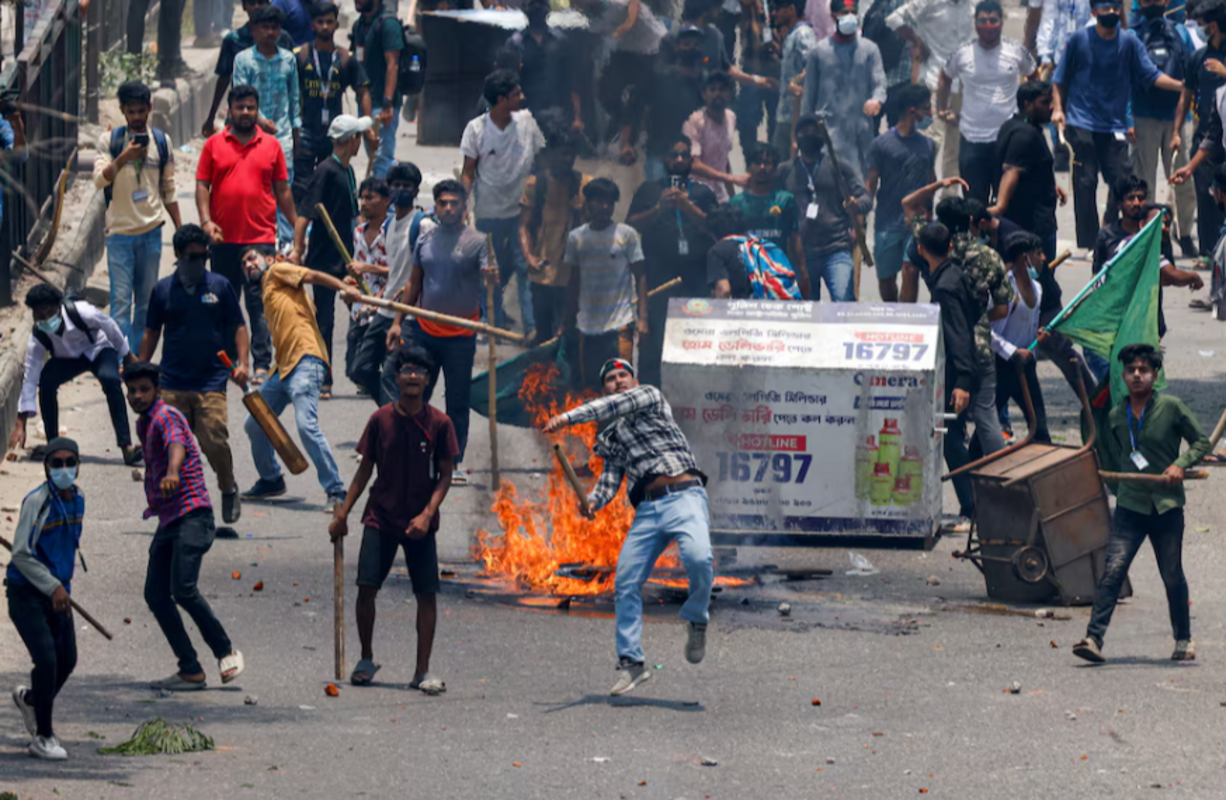 15 липня члени Бангладешської ліги Чатра – студентського крила правлячої партії «Авамі Ліг» – напали на студентів-протестувальників у кампусі Даккського університету.Відтоді сутички між силами безпеки, протестувальниками та прихильниками уряду загострилися, а влада Бангладеш розгорнула свій воєнізований батальйон швидкого реагування, який потрапив під санкції США у 2021 році після «поширених звинувачень у серйозних порушеннях прав людини».Поліція застосовує сльозогінний газ, гумові кулі та шумові гранати проти демонстрантів. У країні також майже повністю вимкнули інтернет та мобільний звʼязок в спробах придушити протести.Читати ще: У Тель-Авіві біля посольства США впав безпілотник. Загинула людина