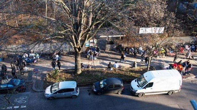 Близько 13:00 за місцевим часом в черзі зібралося 550 осіб, багато з них очікували з суботи, їх перерахували і занесли в список. О 18:00 людей перерахували і тих, хто не відгукнувся, виключили зі списку. Очевидці розповіли, що багато в черзі розгорнули на вулиці намети і переносні столики.