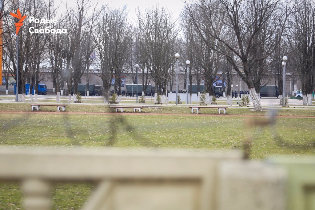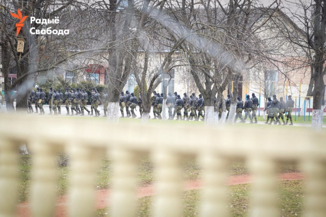 За повідомленням очевидців у Твіттері, у Гомелі усі площадки та сквери перекрито спецтехнікою.
