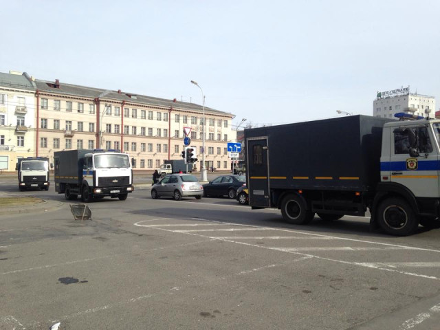 25 березня у Білорусі проходять акції, присвячені Дню Волі, на трасах в напрямку Мінська чергують ДАІ і автоматники, у центр міста стягнуто автозаки.
