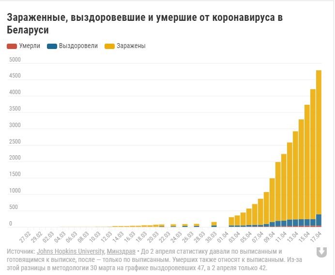 У Білорусі зареєстровано 4779 осіб з наявністю коронавірусної інфекції, за останню добу додалися 575 випадків.