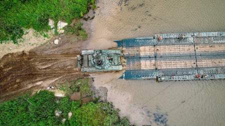 Наразі невідомо, військові Росії чи Білорусі розгорнули цей міст.