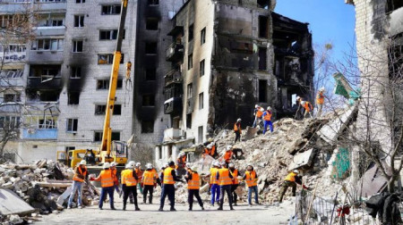 Керівник гуманітарного штабу Київської області Олексій Кулеба розповів, що рятувальники почали знаходити перших загиблих у Бородянці, яка місяць була під російською окупацією.