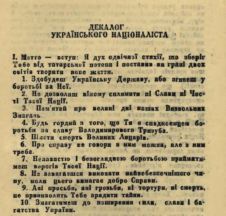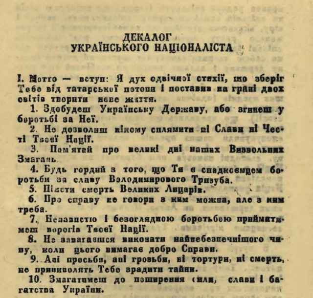 Розбираючи стару бойківську хату з села Плав’я на Львівщині, щоб перевезти її на територію заповідника «Тустань», фахівці знайшли записку в таємному сховку. Через пів року завдяки зусиллям реставраторів її вдалося прочитати. Там був записаний Декалог ОУН.