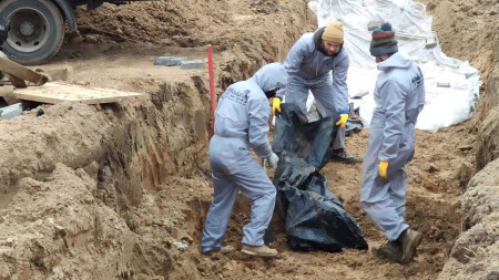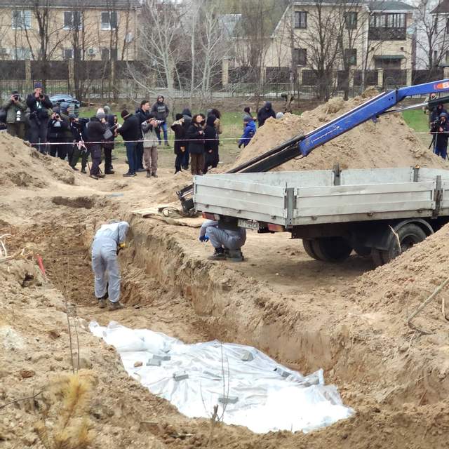 У Бучі з братської могили проводять ексгумацію тіл закатованих росіянами українців. Загиблих мають перепоховати по-людськи.