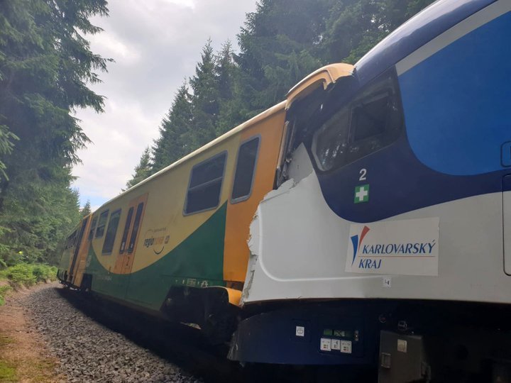 Потяги зіштовхнулися між станціями «Нове Гамрі» й «Пернінк», що неподалік Карлових Вар. Усіх постраждалих евакуювали до останньої станції.