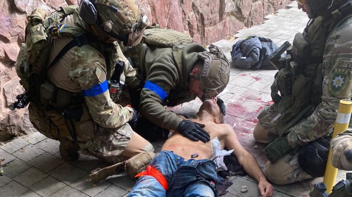Він повідомив, що під час затримання стрілок застосував зброю, його підстрелили.