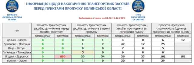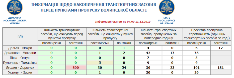 Станом на ранок 11 грудня в черзі застрягли 800 вантажних автомобілів. 54 вантажівки вже чекають у самому пункті пропуску. Таку інформацію надають у Державній фіскальній службі.