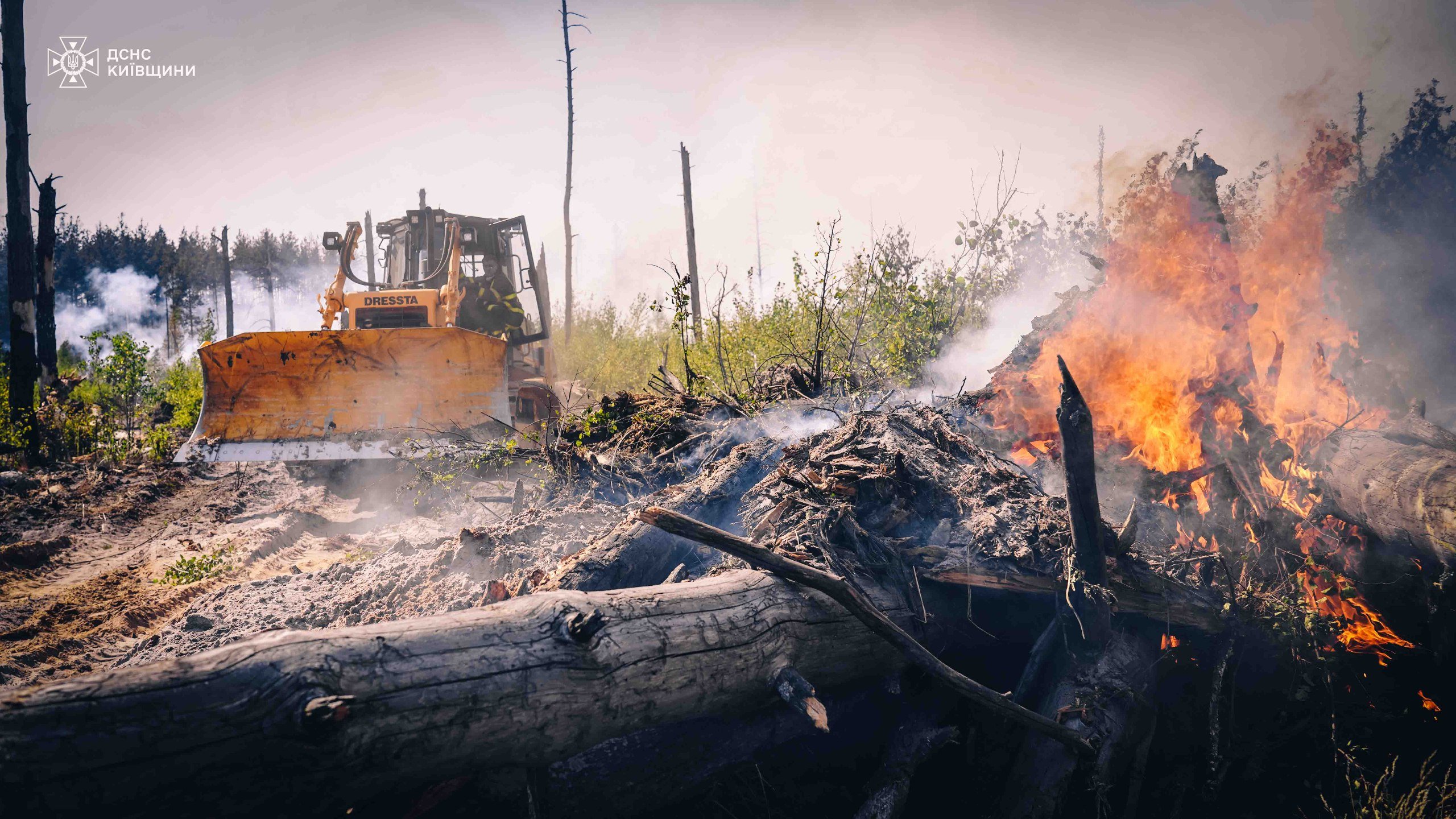 «На Київщині триває ліквідація пожежі на відкритій території. Наразі на місці працюють 399 рятувальників, 103 одиниці техніки від ДСНС, залучених з різних куточків України, а також 17 одиниць техніки від лісового господарства. Через сильний вітер вогонь швидко розповсюджується на нові ділянки», – йдеться в повідомленні ДСНС.