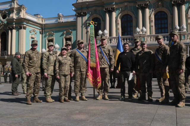 У День піхоти Президент України Володимир Зеленський вручив почесну відзнаку «За мужність та відвагу» 14-й окремій механізованій бригаді імені князя Романа Великого і вручив державні нагороди воїнам.