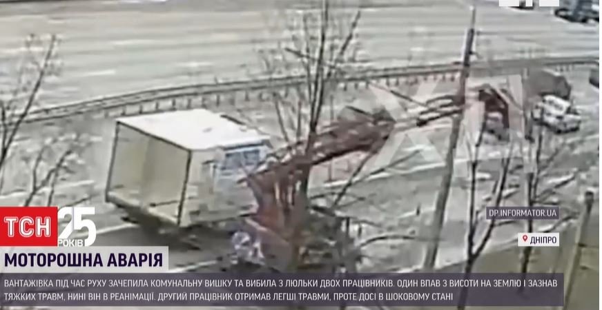 У Дніпрі комунальники вилетіли з автовежі, яку зачепила вантажівка. Відео