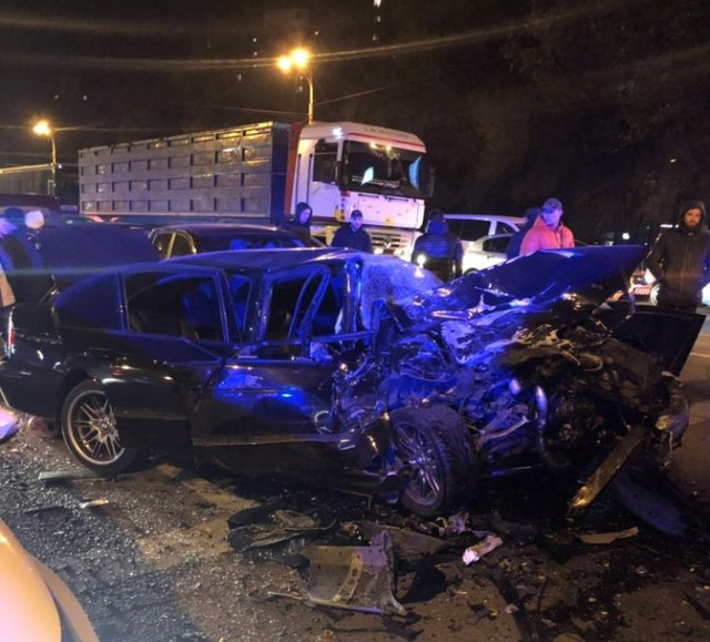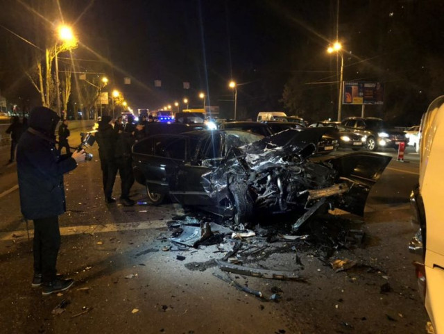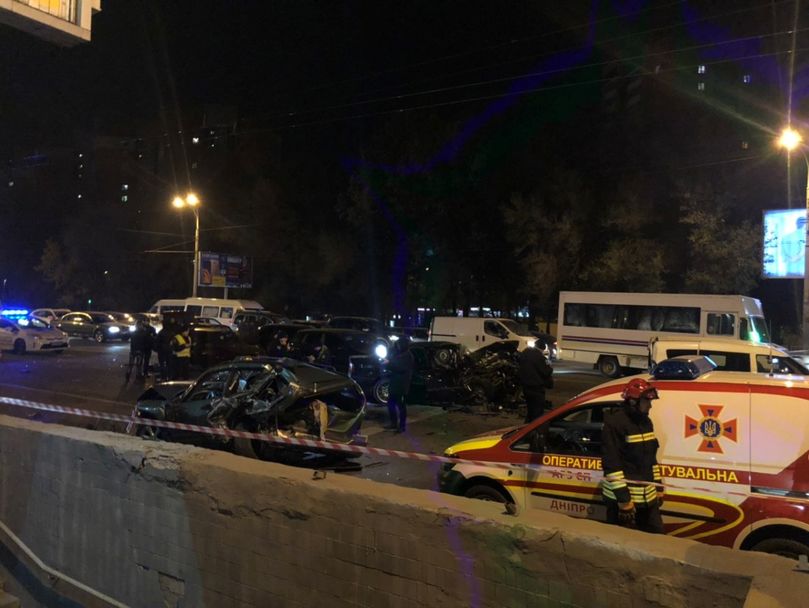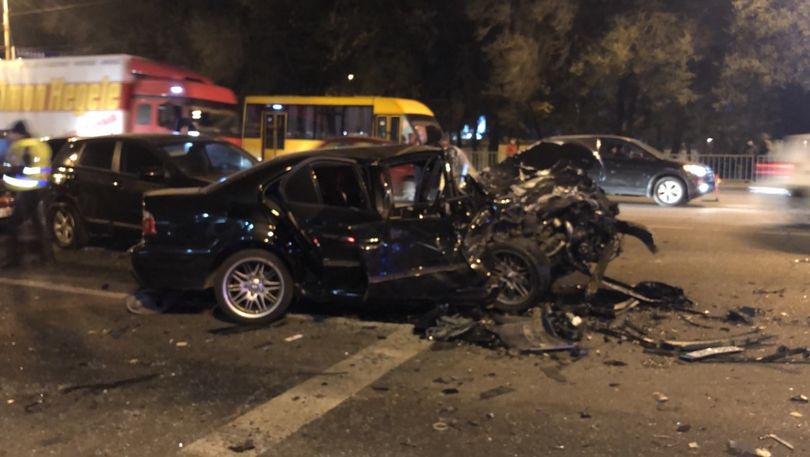 За попередніми даними, водій BMW на високій швидкості врізався в Subaru. Останній перекинувся чотири рази, зачепивши вісім автомобілів.