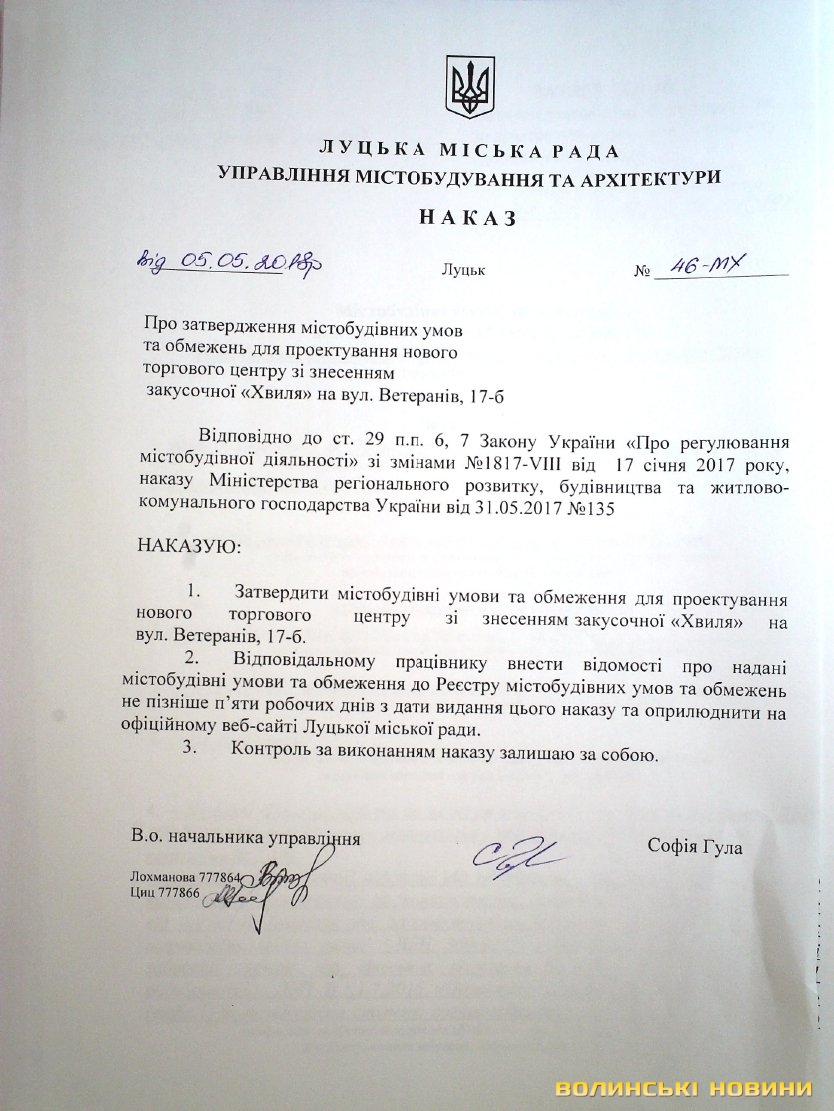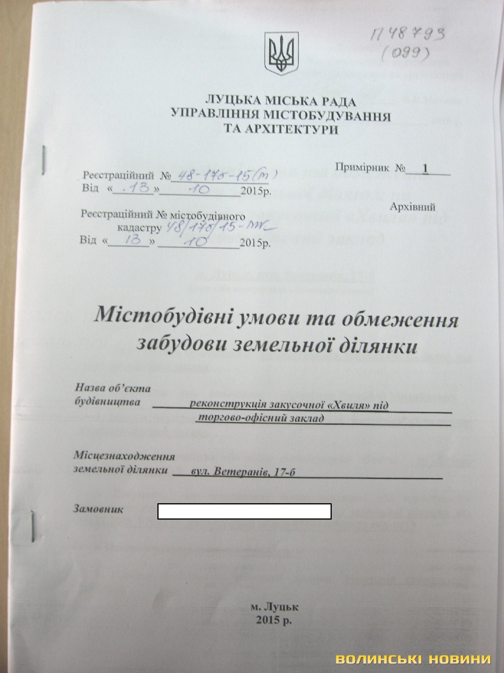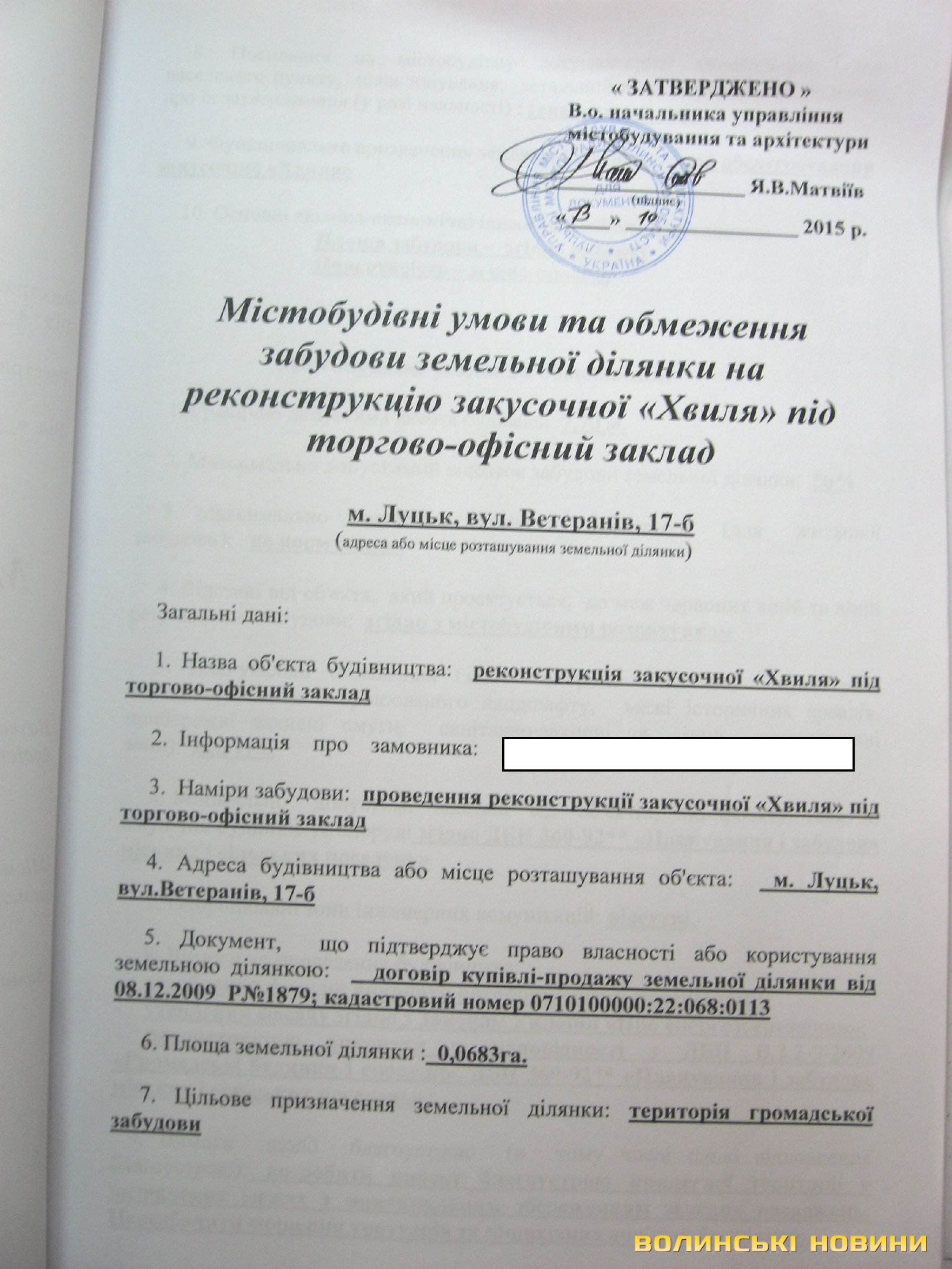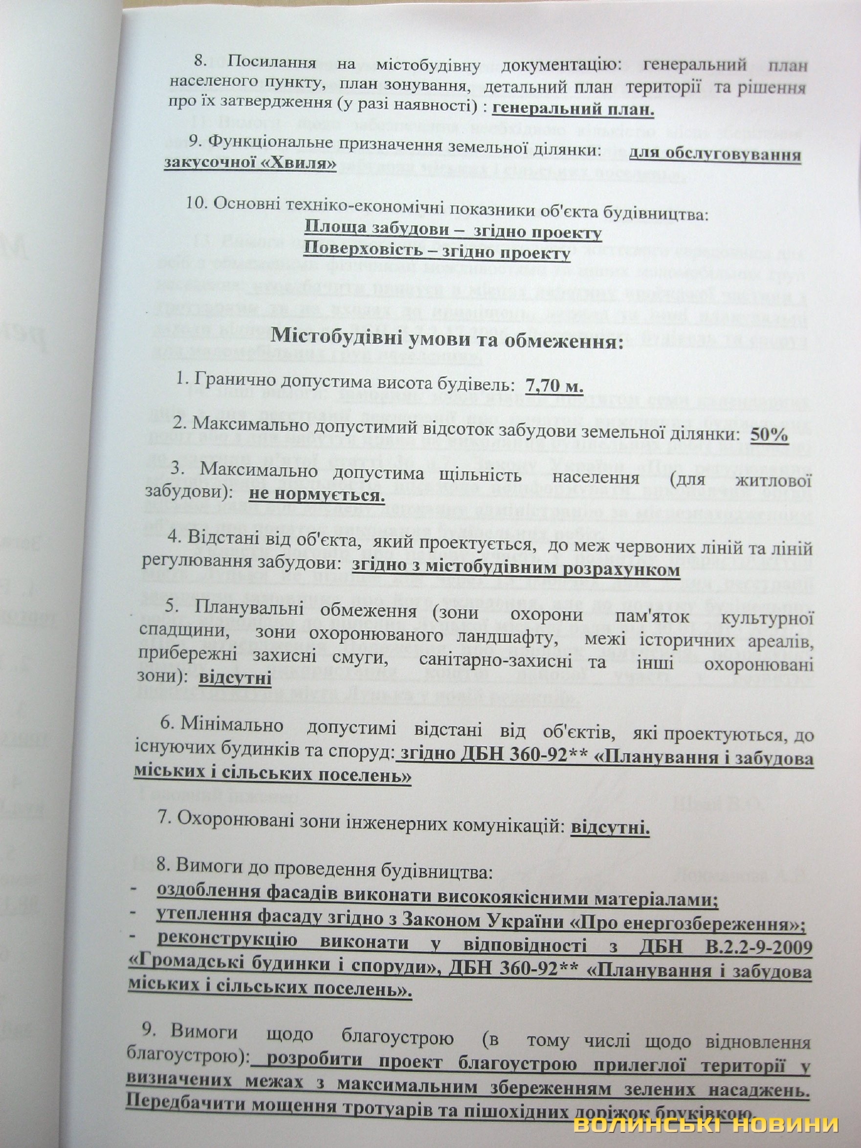 Видавались містобудівні умови та обмеження на «Нове будівництво торгового центру зі знесенням закусочної «Хвиля».