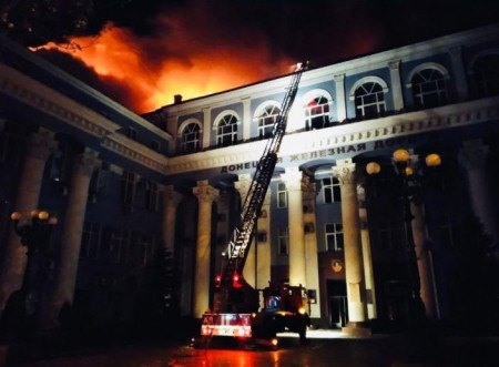 Потужна пожежа спалахнула в будівлі Донецької залізниці. Так званий «мер» Донецька Олексій Кулемзін заявив, що українська армія застосувала РСЗВ Himars.