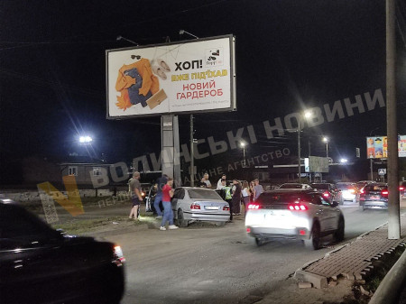 У Луцьку 20-річний водій BMW, здійснюючи випередження Nissan Leaf, допустив з ним зіткнення, після чого в’їхав у рекламний щит.