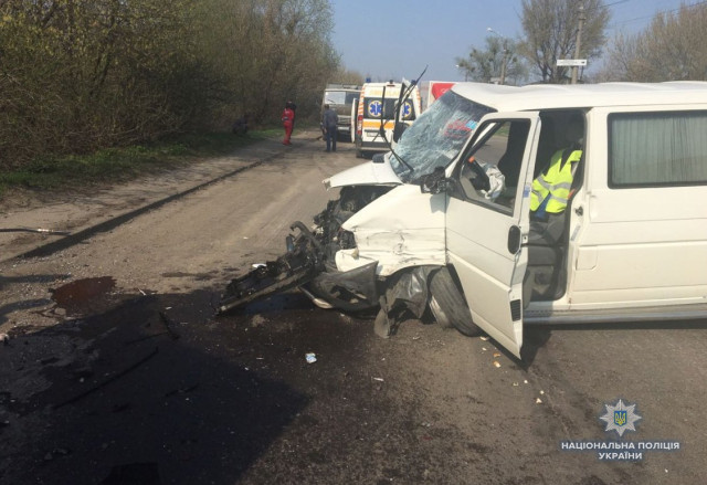 У результаті зіткнення водій автомобіля «Volkswagen Transporter» та його пассажирка, 47-річна жителька Житомирської області, отримали тілесні ушкодження. Жінку госпіталізували.