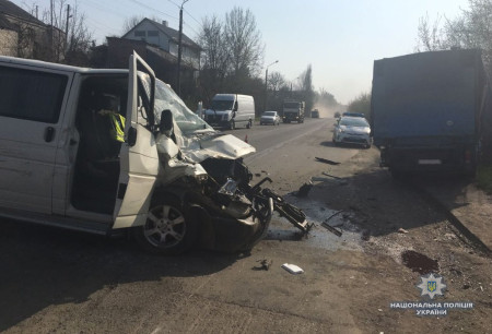 У результаті зіткнення водій автомобіля «Volkswagen Transporter» та його пассажирка, 47-річна жителька Житомирської області, отримали тілесні ушкодження. Жінку госпіталізували.