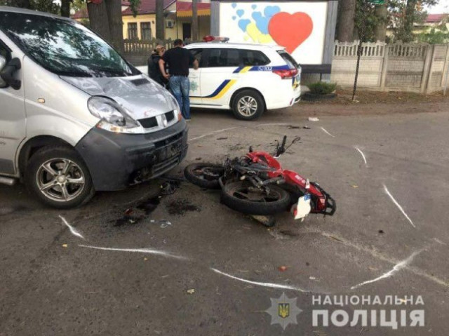 Водій Renault Trafic, 47-річний житель Рівного на вулиці Центральна у Клевані під час виконання маневру повороту ліворуч не надав перевагу у русі та зіткнувся із мотоциклом Lifan, під керуванням 22-річного місцевого жителя.
