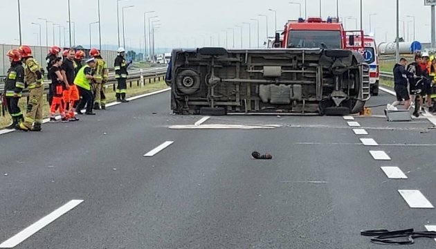 «Біля Тарнува в Польщі сталася ДТП. Постраждали четверо українців, у т.ч. неповнолітній. Їх госпіталізовано, надається необхідна медична допомога. Решта пасажирів без травм», – написав Ніколенко.