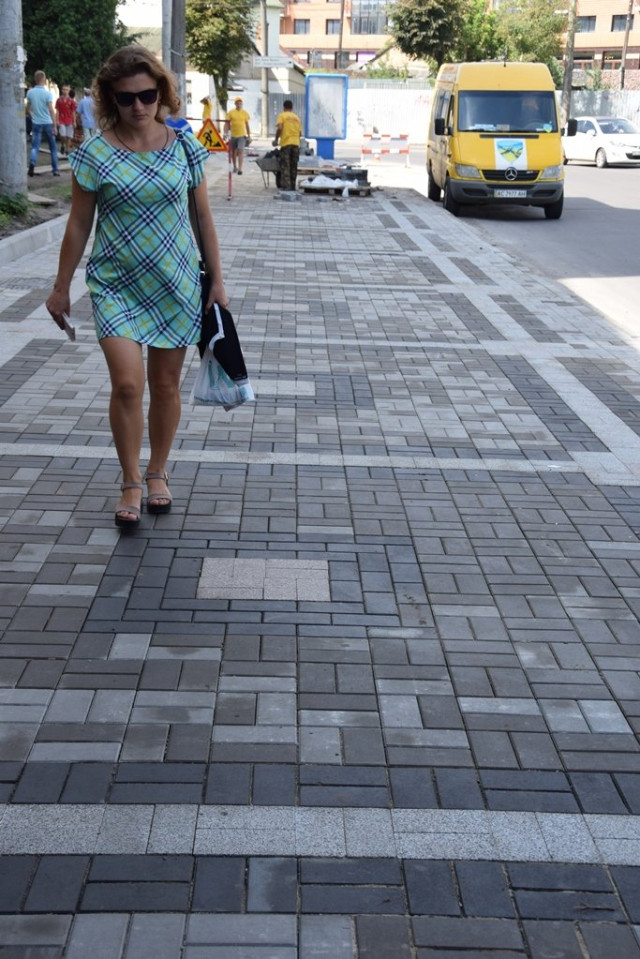 Завершальною точкою огляду став ремонт пішохідних зон уздовж центральної дороги міста – вулиці Винниченка. Тут пішохідні доріжки викладаються за сучасною технологією, беручи початок на кільці, що по вул. Грушевського. Новенька бруківка буде викладена упродовж усієї вулиці Винниченка аж до центрального універмагу із двох сторін проїжджої частини. Родзинкою бруківки є поєднання двох видів матеріалів – природного гранітного каменю і бруківки. Гарантія на це покриття – сім років. Також уздовж вулиці будуть встановлені брендовані люки.