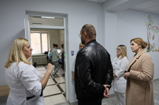 Луцький міський голова Ігор Поліщук та його заступник Ірина Чебелюк оглянули ремонт першого поверху міської дитячої поліклініки на вулиці Чорновола. Цього року його капітально відремонтували після того, як були розірвані угоди з орендарями, що винаймали площі на цій території.