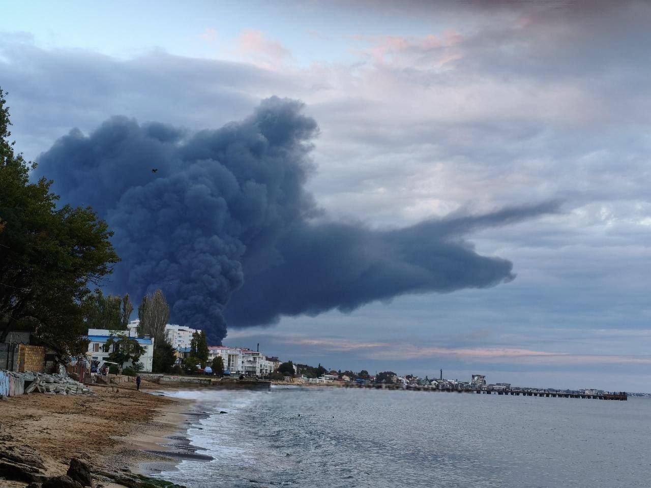 «Нафтоналивний термінал у Феодосії продовжує горіти. Найпотужніше вогнище пожежі спостерігається в північно-східній частині нафтобази», – йдеться у повідомленні.