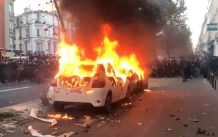 В районі площі Бастилії почалися сутички з правоохоронцями, після чого демонстранти почали палити автомобілі, зводили барикади, а також закидали поліцейських пляшками та феєрверками. Правоохоронці застосували проти демонстрантів сльозогінний газ і водомети.