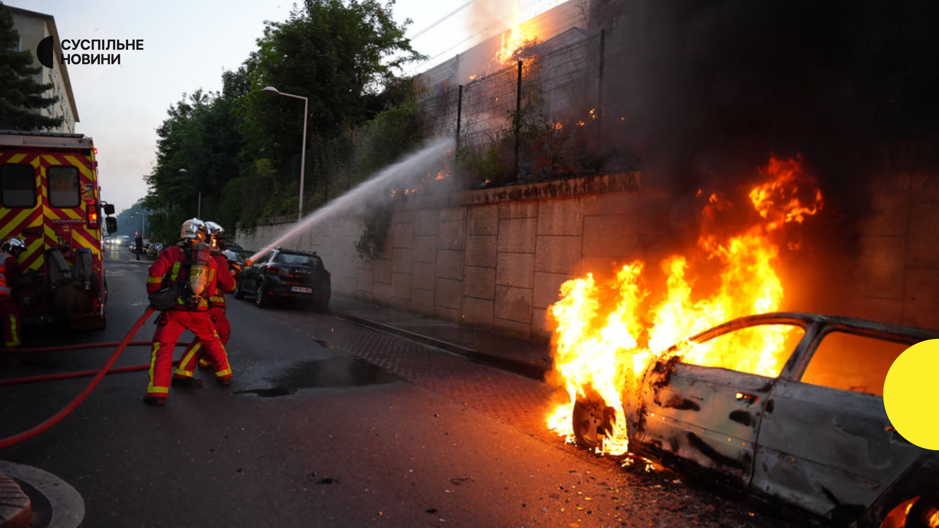Відео в соціальних демонстрували показали численні пожежі по всій країні, в тому числі в автобусному депо в передмісті на північ від Парижа і в трамваї в східному місті Ліон.