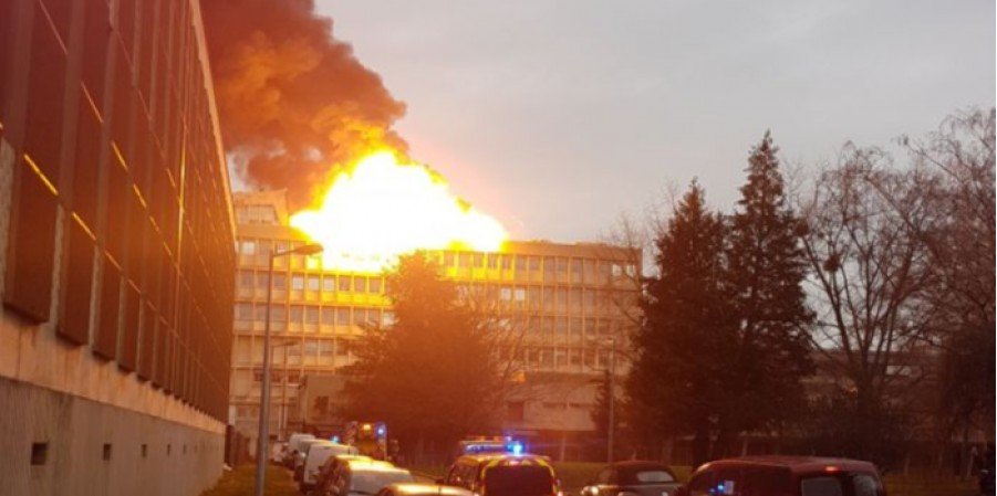 Now: Huge explosion and fire at one of the University of #Lyon's campuses. People are being urged to avoid the area. pic.twitter.com/L5kNBrohjZ