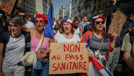 У суботу понад 100 тисяч осіб вийшли на вулиці по всій Франції, щоб засудити правила, розроблені для боротьби з кількістю інфекцій, що зростає. Зокрема, йдеться про обов’язкову вакцинацію медичних працівників і запровадження пропусків до більшості громадських місць.