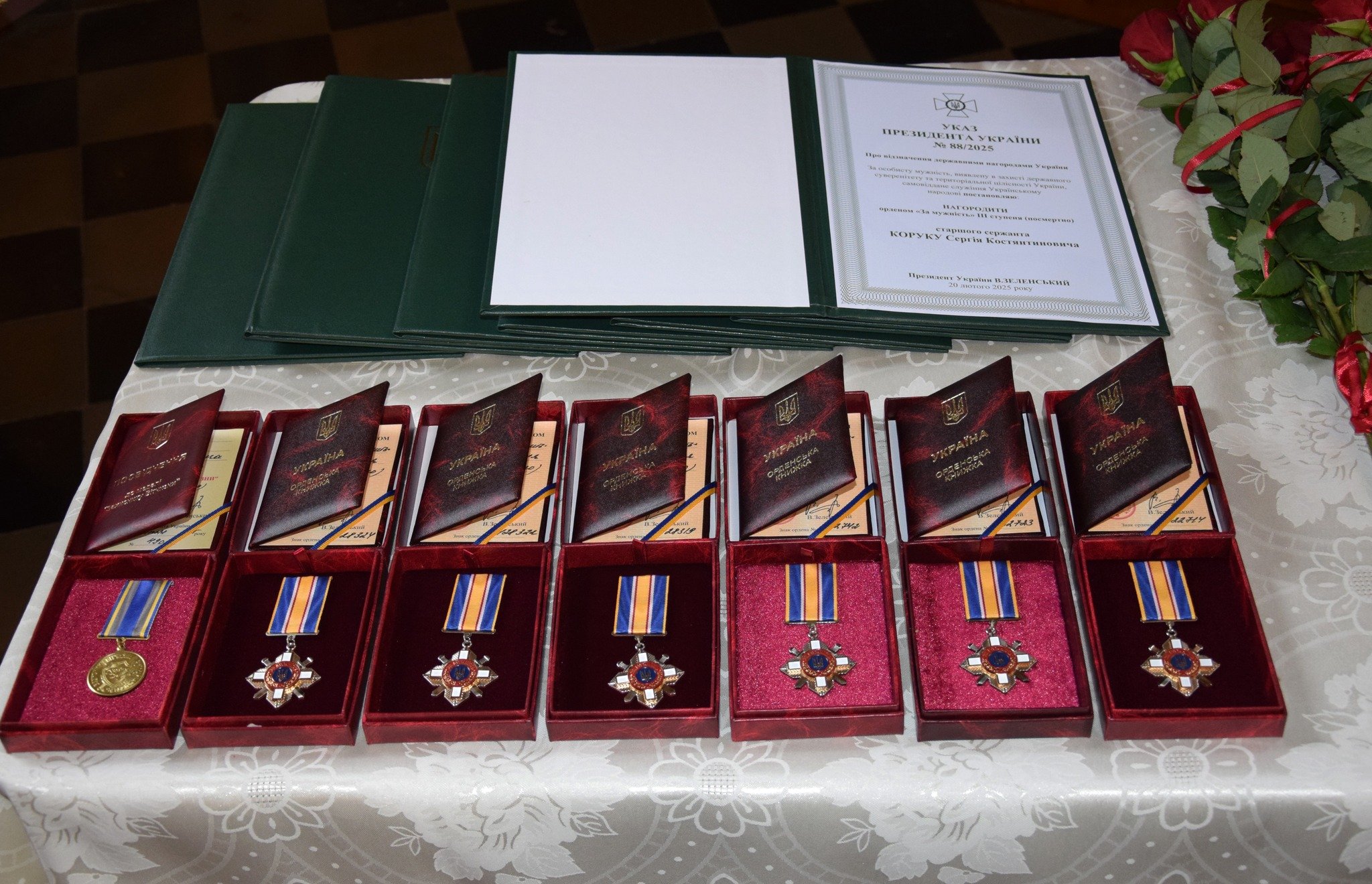 Після панахиди начальник прикордонного загону полковник Богдан Ігнатюк висловив щиру подяку родинам загиблих охоронців кордону за їхню мужність, витримку та жертовність. Він вручив рідним посмертні державні відзнаки захисників України.Згідно з Указом Президента України, орденом «За мужність» ІІІ ступеня посмертно нагороджено шістьох військовослужбовців. Серед удостоєних – старший сержант Олександр Новосад з Устилузької громади та старший солдат Микола Проскура з Володимира, які у складі прикордонної комендатури швидкого реагування Волинського прикордонного загону виконували бойові завдання на сході країни.Також відзнаки отримали родини трьох військовослужбовців 11-го прикордонного загону: старшого майстер-сержанта Івана Дзьобана з Вишнівської громади, сержанта Олександра Мартинюка з Луцька та старшого солдата Сергія Салінського з Ковеля. Орден вручено й рідним старшого сержанта Луганського прикордонного загону Сергія Коруки із Затурцівської громади.