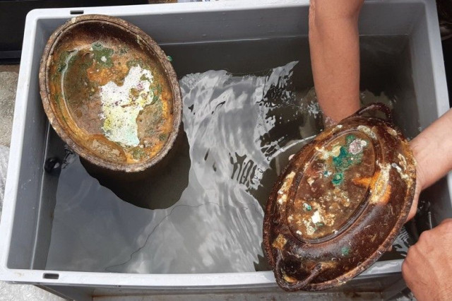 Також із дна Егейського моря дістали керамічну плитку, якою була прикрашена турецька лазня на судні, та бінокль. Влада Греції зауважила, що деякі відібрані об’єкти не змогли підняти на берег через їх місце перебування чи стан збереження.«Умови на місці затонулого судна були особливо складними через течії, глибину та низьку видимість», – пояснили в міністерстві культури.Там додали, що отримані речі з «Британніка» перевезли до лабораторій в Афінах, де проведуть процедуру з їх консервації. Очікують, що предмети стануть частиною постійної експозиції в музеї підводних старожитностей, який будують у місті Пірей.