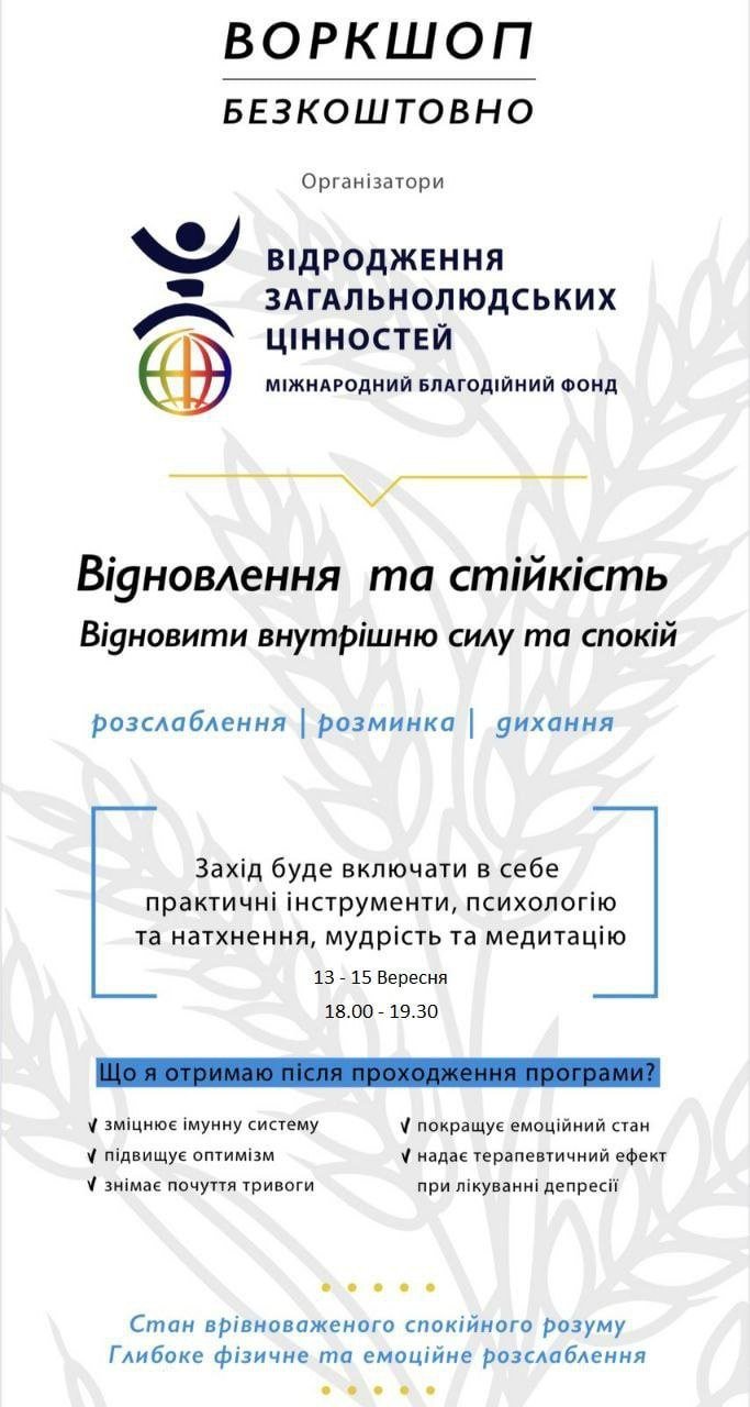 Захід буде міститиме практичні інструменти, психологію та натхнення, мудрість та медитацію.