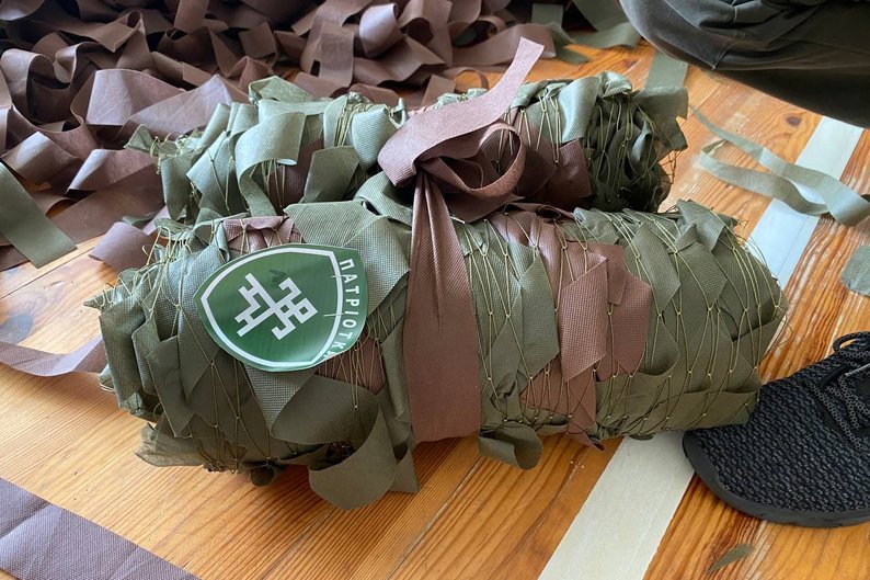 «Ось такий формат: почали плести зимові сітки. Нам сказали, що вони можуть бути рідші, ніж зелені, бо снігу було небагато цього року. Берете і просто через три вічка перевертаєте», – пояснює волонтерка.Як додав волонтер Руслан Лопушан, до готового виробу кріплять мотиваційні дитячі малюнки, потому наклеюють фірмовий шеврон волонтерського осередку «Патріотки» і відправляють захисникам на передову.