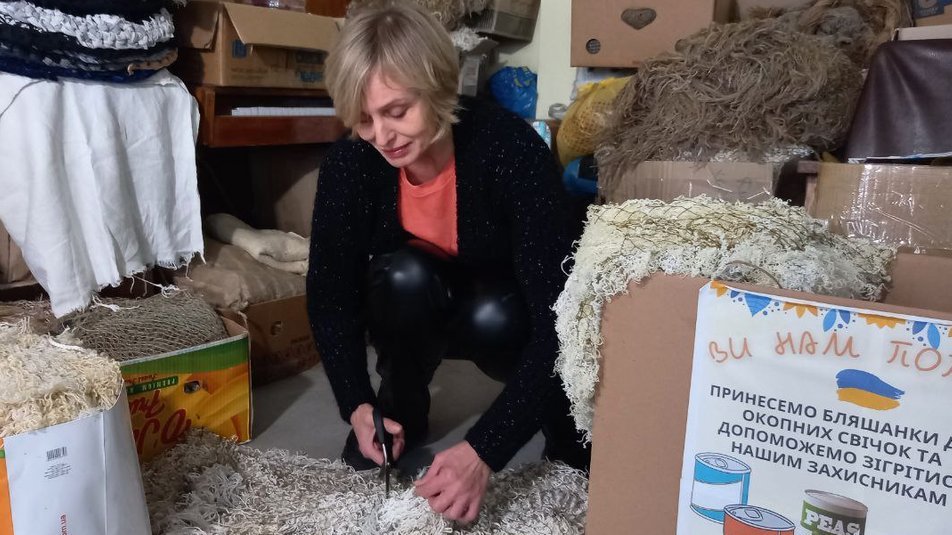 За сім місяців волонтерської роботи сплели майже пів тисячі кікімор, розповіла волонтерка Валентина Шевчук. Зараз займаються різними запитами військових: плетуть шкарпетки, килимки, передають продуктові набори на передову.